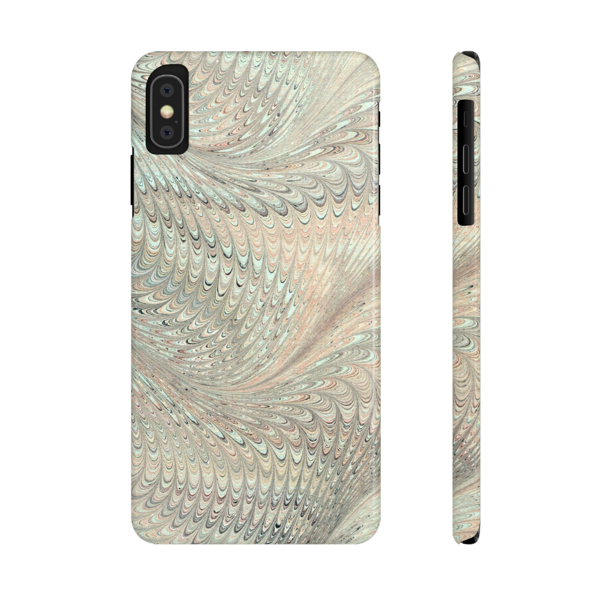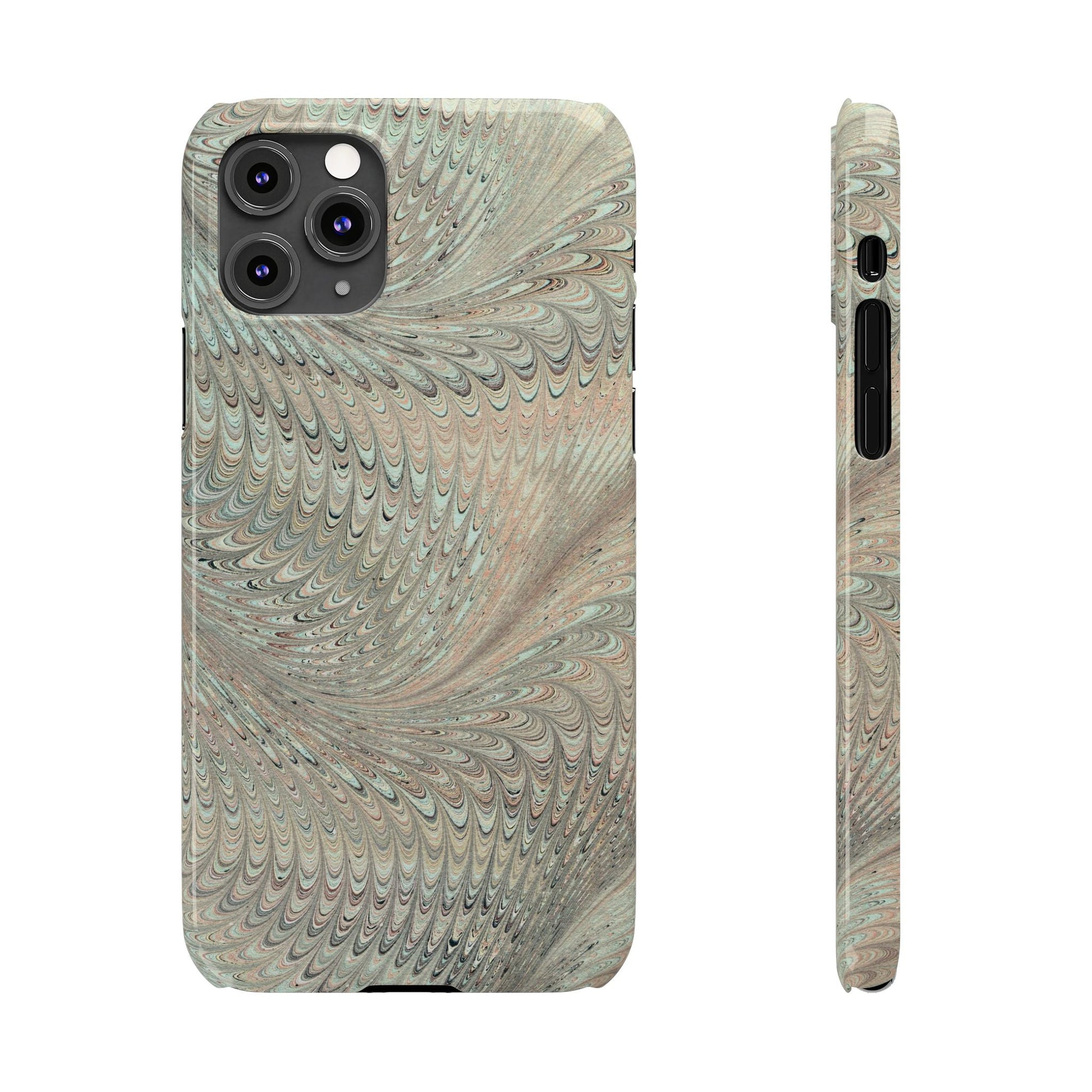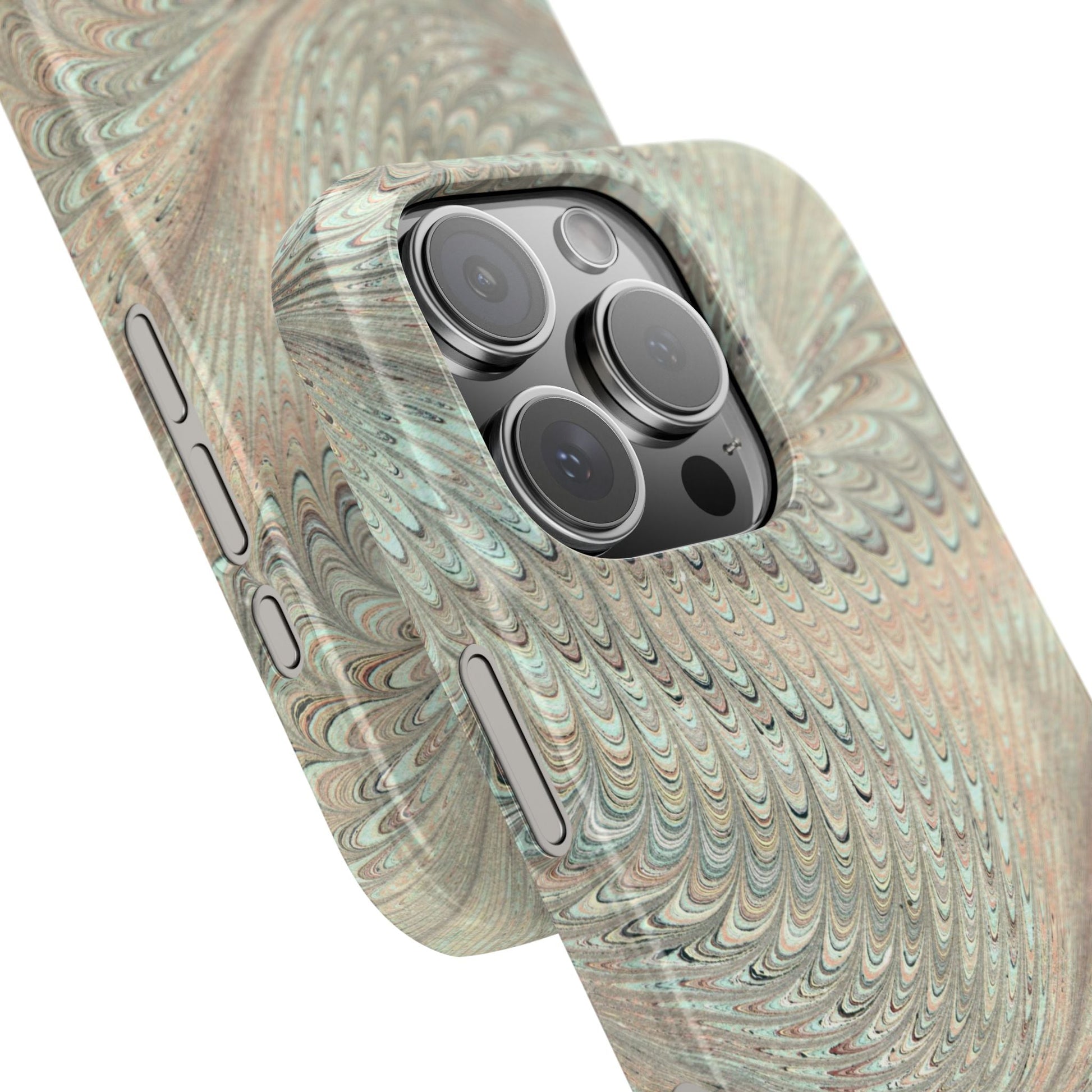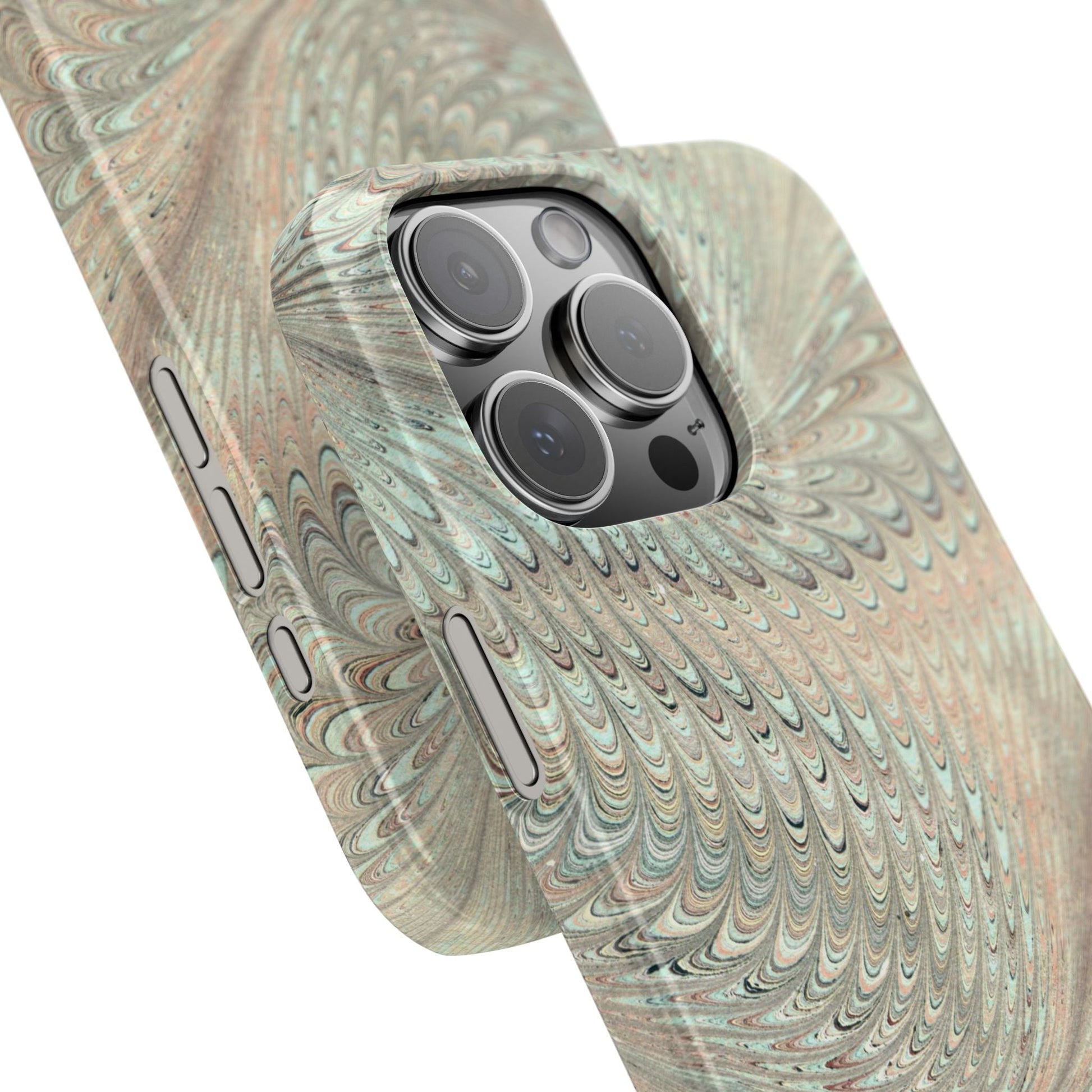 Marbled VIntage Design, Italian Feather Phone Case, Green Hues, Mint, Beige, Neutrals, Slim Phone Cases, IPHONE15 and all sizes
